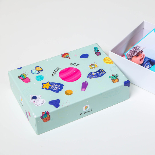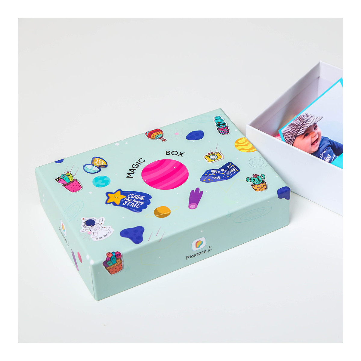 N'oubliez pas de sauvegarder votre personnalisation pour pouvoir l'ajouter au panierUne superbe boite colorée avec 30 photos et plein d’accessoires déco.