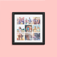 Mais rien ne vous oblige à ne choisir qu’une seule photo ! choisissez 9 photos parmi les photos qui jouent le contraste ou qui ont, au contraire, un point commun, ou même des photos qui vont raconter une histoire dans un petit cadre mignon carré en bois (35x35) prêt à être accroché partout.